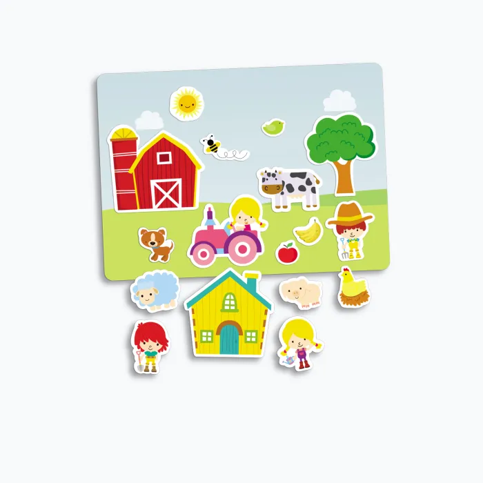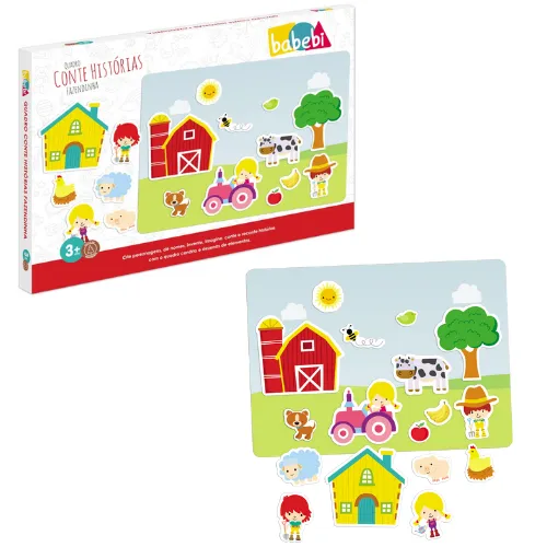 Crie personagens, dê nomes, invente, imagine, conte e reconte histórias com este quadro em formato de cenário e dezenas de elementos.