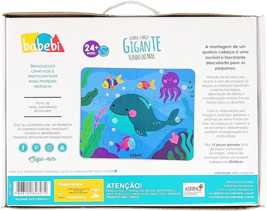 1 Quebra Cabeça Infantil Gigante Fundo do Mar Com 12 Peças.