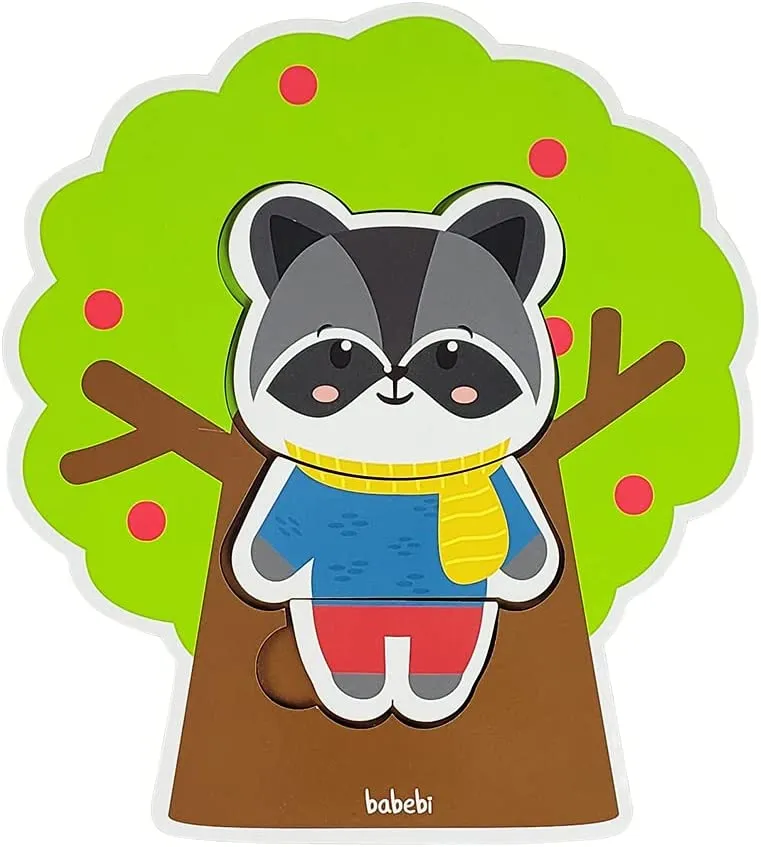 6 quebra-cabeças divididos em 3 partes, árvore com encaixe.