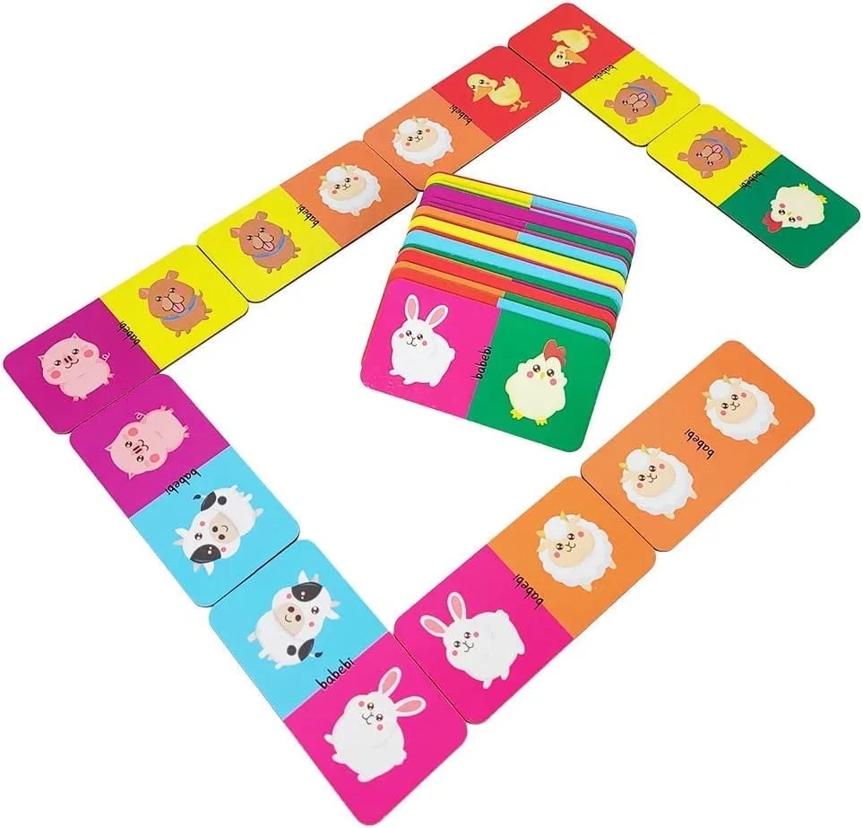 Combine os pares dos animais da fazenda. Combinando e montando o dominó, as crianças treinam a percepção, concentração e o raciocínio lógico / +3 Anos