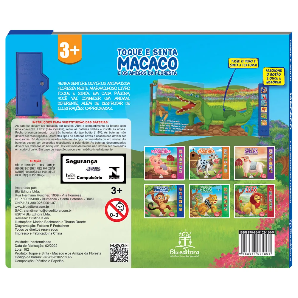 Etiquetas: animais, blu editora, floresta, livro crianças, livro de história, livro infantil, livro sonoro, macaco, toque e sinta.