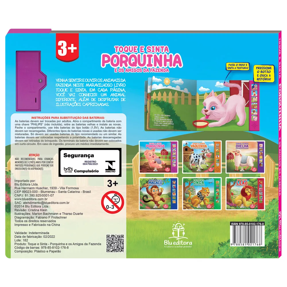 Etiquetas: animais, fazenda, livro crianças, livro de história, livro infantil, livro sonoro, porco, porquinha, toque e sinta.