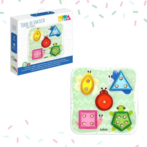 Encaixar e empilhar. Experimentando, os pequenos aprendem as primeiras noções de cores, formas, tamanhos e o contar até cinco. Desenvolvem a coordenação motora, raciocínio lógico de maneira lúdica e criativa.